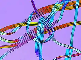 - همانطور که فیبرها از سلول خارج میشوند، تعداد رشتههای جامد با هم ترکیب میشوند تا ضخامت مورد نظر تولید شود. هر فیبر اسپندکس از بسیاری از الیاف کوچکتر تشکیل شدهاست که به دلیل چسبندگی طبیعی سطح آنهاست.