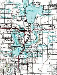 ![]() The town of Spirit Lake, in the Iowa Great Lakes region. Map courtesy of USGS | |