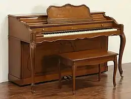 پیانوی اسپینت ، نوعی از ساز اسپینت بود که از دهه ۱۹۳۰ تا اوایل قرن اخیر تولید میشد. اوج روند تولید آن در بین تولیدکنندگان برای این نوع پیانوی کوچکتر و ارزان قیمت در اواسط قرن گذشته بود. هدف از ساخت این پیانو، تولید سازی با قیمت پایین بود برای صاحبان خانه که فضای کافی برای پیانو در دسترس نداشتند. بسیاری از پیانوهای اسپینت هنوز هم وجود دارند، که از دوره تولید آنها باقی ماندهاست. مشخصه اصلی پیانو اسپینت ، افت عملکرد آن است (که بعضاً عمل ضربه غیرمستقیم نیز نامیده میشود). در این دستگاه، کلیدها مستقیماً عمل ضربه زدن را درگیر نمیکنند. در عوض آنها اهرمهایی بنام"stickers[5]" دارند که هر کدام به ازای خود، اهرمهای دیگری را به طرف بالا میکشند که در زیر سطح صفحه کلید قرار دارند و به سهم خود اجزا دیگر را درگیر میکنند. stickerها به اندازه کافی بلند بودند که سر چکش (بالاترین قسمت عمل) تقریباً در همان سطح عمودی مانند صفحه کلید به انتها میرسد. به لطف قطری چیندن سیمها، پیانوهای اسپینت میتوانند بسیار کوچک باشند. قسمت بالای اسپینت تنها چند اینچ از سطح صفحه کلید خود بلندتر است با این حال، به گفته سازنده پیانو، لری فین،[6] هزینه و کیفیت بسیار قابل توجه دارد. stickerها اغلب پر سر و صدا و دردسرساز بودند". علاوه بر این، برای ایجاد فضای مناسب برای آنها باید کلیدها کوتاهتر میشدند که منجر به "بسیار ضعیف شدن اهرم هاً و در نتیجه حس لمس و کنترل ضعیف برای نوازنده میشد. سرانجام، سیمهای بسیار کوتاه اسپینت منجر به محدوده ای باریک از هارمونیکها و در نتیجه کیفیت بد و ضعیف شد. سرویس اسپینتها: سرویس دهی بسیار دشوار است زیرا حتی کوچکترین ترمیم که مستلزم خرابی ساز بوده باشد به یک مشکل بزرگ تبدیل میشد. هر یک از stickerهای اتصال باید جدا شده و عمل گره خوردن (مونتاژ کردن اهرمها) را از اول انجام دهند و قبل از برداشته شدن اهرمها، یاید تمام کلاویهها از پیانو جدا شوند.