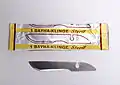 ![]() انواع اسکالپل. اسکالپلهای اول، دوم و چهارم (از چپ) دارای تیغه قابل تعویض هستند. | |