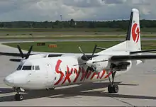 یک فروند فوکر ۵۰ اسکایویز در فرودگاه ویزبه.