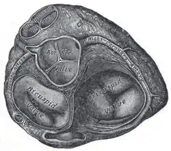 ![]() Transverse section of the heart showing the fibrous rings surrounding the valves | |