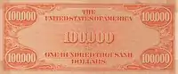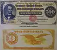 اسکناس ۱۰۰٬۰۰۰ دلاری در نوع گلد سرتیفیکیت در سال ۱۹۳۴ عرضه شد. اسکناس ۱۰۰٬۰۰۰ دلاری با شمایل وودرو ویلسون بر روی آن و عبارت ۱۰۰٬۰۰۰ دلار بر پشت طلایی رنگ اسکناس ظاهر گردید. یک قطعه از این اسکناس جهت نمایش عموم در موزه اسمیتسونین که مربوط به رخدادهای تاریخی ایالات متحده آمریکا میباشد، نگهداری میشود. حق مالکیت خصوصی اسکناس ۱۰۰٬۰۰۰ دلاری در آمریکا ممنوع میباشد و تا به حال گزارشی مبنی بر نگهداری و مالکیت خصوصی این اسکناس مخابره نشدهاست.[1]