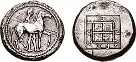 ![]() سکه مربوط به اواخر سلطنت اسکندر اول که در حدود ۴۶۰-۴۵۰ قبل از میلاد ضرب شدهاست. | |