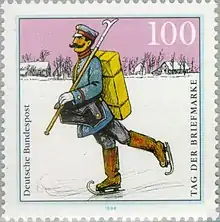 یک پستچی در آلمان طی زمستان 1900 (تمبر از 1994)