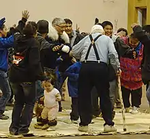 پایکوبی اسکیموها در یک جشن آیینی در آلاسکا