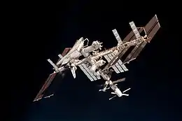 ![]() شاتل اندور در حالت متصل شده به ایستگاه فضایی. عکس توسط Soyuz TMA-20 گرفته شدهاست. | |||||