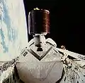 ![]() فضانورد جیمز فن هوفتن در طی یک راهپیمایی فضایی در حال کار روی ماهواره Syncom IV-3 | |||||