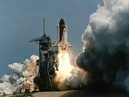 ![]() لحظه پرتاب شاتل چلنجر از پایگاه فضایی کندی | |||||