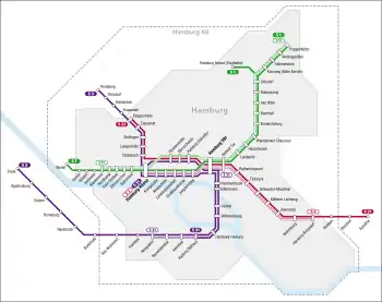 - "S-Bahn-Streckennetzplan" [S-Bahn Route Network Plan] (به German). HVV - DB Bahn. Archived from the original on 2013-09-23. Retrieved 2013-10-01.