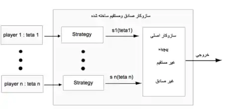 برای مثال فرض کنید بازی A را داریم که در آن n بازیکن که غیر صادق هستند و به صورت رندوم بازی میکنند و سازوکار بازی به گونه غیر مستفیم (Indirect) میباشد. پس شکل آن به گونه زیر میباشد: