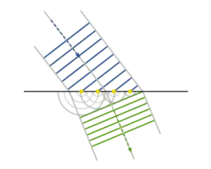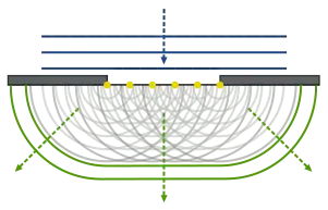 هر نقطه روی جبهه موج اولیه مانند یک چشمۀ امواج کروی ثانویه عمل میکند. بهطوریکه جبهۀ موج اولیه در لحظه بعدی، پوش (Envelope) این موجکهای ثانویه است. افزونبراین، این موجکها با سرعت و فرکانس مساوی با سرعت و فرکانس موج اولیه در هر نقطه از فضا پیش میروند. اگر محیط همگن باشد، این موجکها میتوانند با شعاعهای متناهی تشکیل شوند. اگر محیط ناهمگن باشد، موجکها بهناچار شعاعهای بینهایت کوچکی خواهند داشت. این میتواند به صورت عددی با انتگرال کیرشهف-فرنل نشان دادهشود.