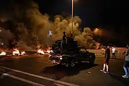 ![]() معترضان پل «رینگ» در بیروت را بستهاند. ۲۶ اکتبر ۲۰۱۹ | |||