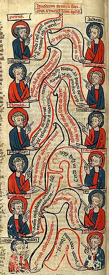 این اعتقادنامه را به رسولان مسیح نسبت دادهاند یعنی هر کدام از ۱۲ بند این اعتقادنامه را یکی از آنها بیان کردهاست. بیشتر بندهای این اعتقادنامه در نوشتههای آگوستین، ترتولیان و امبروس آمدهاست.[2]
