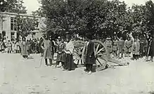 بااینحال بیشتر اعدامها در ایران با طناب دار یا بریدن گردن انجام میشد و اعدام با توپ در موارد استثنایی و به منظور عبرتآموزی صورت میگرفت. برای مثال در کشتار بابیها پس از سوءقصد به جان ناصرالدینشاه در سال ۱۸۵۲ یکی از روشهای اعدام بستن محکومان به دم توپ بود.[66][67][68] از جملهٔ کسانی که به وسیله توپ اعدام شد شیخ علی ترشیزی بود که در آیین بابی به «اسمالله العظیم» معروف است.[69] پس از سرکوب شورش بابیان زنجان نیز چهار بابی را (ایرج کاظم، که برای بابیها یک توپ جنگی ساخته بود، شیخ رمضان، که زنش با لباس مردانه وارد جنگ شده بود، آقا سلیمان، و یک نفر دیگر) با توپ اعدام کردند.[70] در ۱۵ ژوئیه ۱۸۵۲ نیز در یزد، حکاکی به نام علی اکبر را به جرم بابی بودن دستگیر کردند و چون از اعلام برائت از بابیگری سر باز زد او را به توپ بستند.[71] نامهٔ سری مأمور کنسولی بریتانیا در یزد به تاریخ ۹ ژوئیه ۱۹۰۳ نیز خبر از دستور حاکم شهر مبنی بر اعدام یک بهایی با توپ برای «تسکین دادن جمعیت» دارد.[72] به نوشتهٔ کنسول فرانسه در تبریز، در زمان ولیعهدی مظفر الدین میرزا «چهار تن از مردم بیگناه را دم توپ گذاشتند» و کشتند، چرا که شاه رشوه میخواست و «قربانیانش قادر به پرداخت نبودند.»[73] همچنین به نوشتهٔ محمدابراهیم باستانی پاریزی، صفوهالممالک کلانتر جبالبارز را که نگذاشته بود سیم تلگراف انگلیسیها از جبالبارز بگذرد دم توپ گذاشت.[74] مهدیقلی هدایت هم در خاطرات و خطراتش داستان یکی از خانهای گیلان به نام عمیدالسلطنه (معروف به سردار امجد) را روایت میکند که در سال ۱۸۹۸ با پرداخت رشوه از اعدام با توپ جان سالم بهدر برد. به نوشتهٔ او:[75]