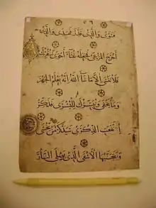 نسخه خطی از آیات سوره اعلی متعلق به عصر ممالیک