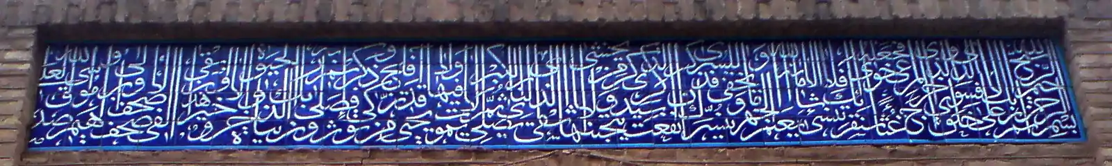هنر کاشی کاری ایرانی سوره اعلی بر روی آرامگاه ابوعثمان مغربی در نیشابور.