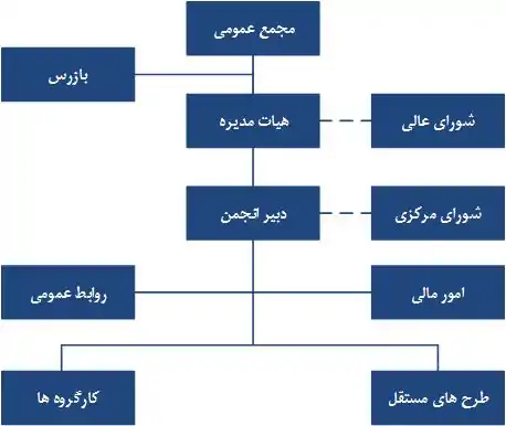 برابرِ اساسنامه، انجمن دارای سه رکن مجمع عمومی، هیئتمدیره و بازرس است. مهمترین رکن انجمن مجمع عمومی است که با حضور همهٔ هموندان یک بار در سال برگزار میشود. در مجمع عمومی دربارهٔ مهمترین مسائل انجمن تصمیمگیری شده، همچنین گزارش عملکرد هیئتمدیره خوانده شده و به پیشنهادها و نقدهای هموندان رسیدگی میشود. اعضای هیئتمدیره بهمدت دو سال و بازرس بهمدت یکسال در نشستهای سالانهٔ مجمع عمومی بهدستِ هموندان انجمن گزینش میشوند. همچنین انجمن دارای شورای عالی است که از هموندان قدیمی، دبیران و بازرسان پیشین انجمن تشکیل یافته و بهعنوان نهادی نگاهبانِ آرمان انجمن، یاریرسانِ هموندان هیئتمدیره است. ساختار اجرایی انجمن شامل کارگروههایی است که در راستای هدفهای انجمن فعالیت میکنند. دبیران کارگروهها شورای مرکزی انجمن را تشکیل میدهند تا در تصمیمسازی و تصمیمگیری به مدیرعامل انجمن، که بنا به عرف دبیر انجمن نامیده میشود، یاری برسانند. هیئتمدیره نمایندهٔ قانونی انجمن بوده و دبیر انجمن (مدیرعامل) بالاترین مقام اجرایی انجمن است و در حدود اختیاراتی که از طرف هیئتمدیره و اساسنامه به وی واگذار شدهاست نمایندهٔ آن محسوب میشود.[2]