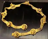 ![]() لوحهای که در آن کوبله توسط دو شیر کشیده میشود، آیخانم، سده دوم پیش از میلاد، موزیم ملی افغانستان در کابل. |
