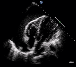 | A 2D transthoracic echocardiogram of pericardial effusion. The "swinging" heart | |