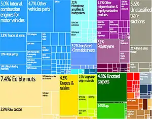 | کالاهای وارداتی | ماشین آلات و دیگر کالا، غذا، پارچه و نفت خام محصولات |
