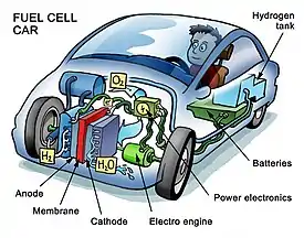 جرج بوش در زمان ریاست جمهوری خود مقدار ۱٫۲ میلیارد دلار برای طرحهای ابتکاری به منظور استفاده از انرژی هیدروژن برای جایگزینی به جای سوختهای فسیلی اختصاص داد.[3] در ایرلند از اتوبوسهایی با مصرف سوخت هیدروژنی استفاده میشود.[4] با این وجود استفاده از هیدروژن مشکلات عملی را نیز دارد که از مهمترین آنها میتوان به در دسترس نبودن مولکول هیدروژن به صورت یکه در زمین اشاره کرد یا حجم بالای هیدروژن برای استفاده در سلول سوختی است زیرا این هیدروژن در حال حاضر فقط به صورت گاز ذخیره میشود وتولید کنندگان اتومبیل سوخت به شکل مایع را ترجیح میدهند.[5]