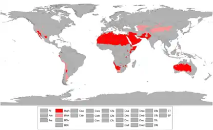 - Wikipedia contributors, "Desert climate," Wikipedia, The Free Encyclopedia, http://en.wikipedia.org/w/index.php?title=Desert_climate&oldid=496930241 (accessed June 14, 2012).