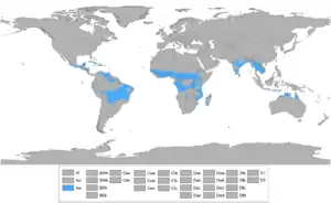 پراکندگی اقلیم ساوان در جهان(Aw).