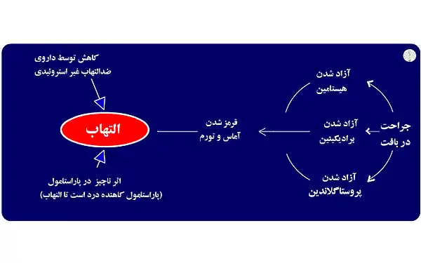 داروهای ضد التهاب در فعالیت آنزیمهایی که موجب التهاب و تورم میشوند تأثیر میگذارد. عارضه التهاب به عوامل مختلف از جمله بیماری قلبی و سرطان ارتباط داده شدهاست.