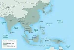 | The geographic distribution of Japanese encephalitis (dark green) | |