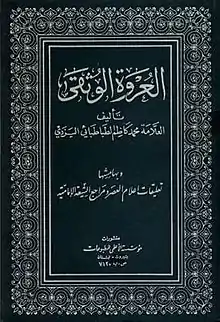 العروةالوثقی فیما تعم به البلوی مشهور به «عروة الوثقی» نام مشهورترین کتاب سید محمد کاظم طباطبایی یزدی است. شهرت کتاب به حدی است که مؤلف آن در بین علمای شیعه به «صاحب عروه» معروف است. این کتاب شامل ابواب مختلف فقه شیعه است و مجموعاً دارای ۳۲۶۰ مسئله است که در سه جلد تألیف شدهاست.[1] برخی نویسندهٔ کتاب را آغازگر دورهٔ جدیدی در فقه شیعه دانستهاند.[2] لازم به ذکر است که نام روزنامه ای از سید جمال الدین اسد آبادی برای بیداری مردم ایران و مسلمانان جهان نیز به این نام بوده است .