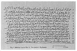 ![]() کتیبهای مرمری به خط المسند، الفبای باستانی پادشاهی یمنی سباء | |