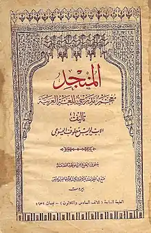 - مشارکتکنندگان ویکیپدیا. «المنجد». در دانشنامهٔ ویکیپدیای عربی، بازبینیشده در ۷ شهریور ۱۳۹۲.