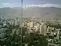 نمایی از برجهای واقع در منطقه الهیه و در پشت آن نمایی از رشته کوههای البرز.
