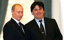 ![]() الکساندر سروف در کنار ولادیمیر پوتین در مراسم اهدای جایزهٔ هنرمند مردمی روسیه در تاریخ ۵ مه ۲۰۰۵ | |
