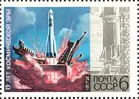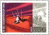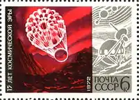 | پست اتحاد جماهیر شوروی، پانزدهمین سالگرد آغاز عصر فضا، نقاشیهای الکسی لئونوف و آندره سوکولوف | ||