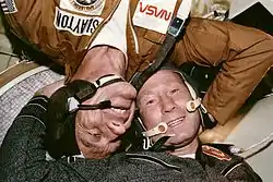 ![]() الکسی لئونوف در طول پروژه آزمایشی آپولو-سایوز | |