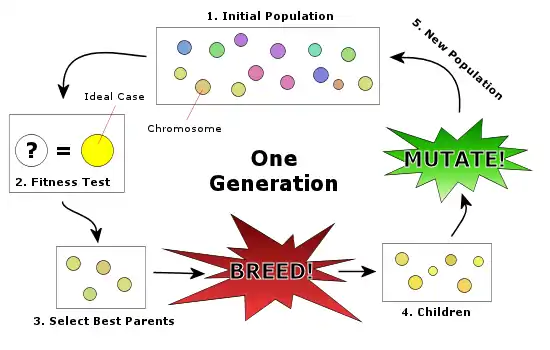 الگوریتمهای ژنتیک یکی از الگوریتمهای جستجوی تصادفی است که ایده آن برگرفته از طبیعت میباشد. الگوریتمهای ژنتیک برای روشهای کلاسیک بهینهسازی در حل مسائل خطی، محدب و برخی مشکلات مشابه بسیار موفق بودهاند ولی الگوریتمهای ژنتیک برای حل مسائل گسسته و غیر خطی بسیار کاراتر میباشند. به عنوان مثال میتوان به مسئله فروشنده دورهگرد اشاره کرد. در طبیعت از ترکیب کروموزومهای بهتر، نسلهای بهتری پدید میآیند. در این بین گاهی اوقات جهشهایی نیز در کروموزومها روی میدهد که ممکن است باعث بهتر شدن نسل بعدی شوند. الگوریتم ژنتیک نیز با استفاده از این ایده اقدام به حل مسائل میکند. روند استفاده از الگوریتمهای ژنتیک به صورت زیر میباشد: