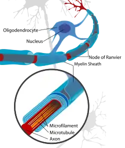 ![]() Oligodendrocytes form the electrical insulation around the axons of CNS nerve cells. | |