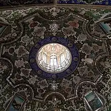 دیوارههای درونی و بیرونی بقعه، با قطعات کوچک کاشی به رنگهای فیروزهای و لاجوردی با اشکال هندسی تزیین شده و فاصله بین کتیبه و ازاره و کتیبه و گنبد با گچبری پوشانده شدهاست. مزار هم کتیبهای گچبریشده با تاریخ ۱۱۱۵ق دارد.