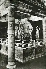 | Chūson-ji (中尊寺)[4][5][6] | Temple | Said to have been founded by Ennin in ۸۵۰; rebuilt by Fujiwara no Kiyohira at the beginning of the twelfth century with a pagoda and the Daichōju-in, a Great Hall dedicated to Amida; fires in 1337 consumed many buildings and temple treasures; unusually, the mummified bodies of Fujiwara no Kiyohira and his heirs were interred at the Konjikidō, the Hall of Gold dedicated to Amida (pictured; National Treasure); the compound is a Special Historic Site | ![]() |