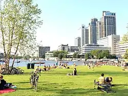 ![]() Omval seen from the Korte Ouderkerkerdijk on the other side of the Amstel | |