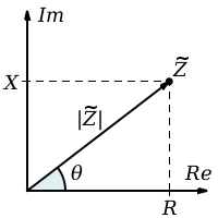 که در آن بیانگر نسبت تفاضل دامنه ولتاژ به دامنه جریان است و جمله arg (Z) (معمولا با نماد q نشان داده می شود) تفاضل فاز بین ولتاژ و جریان را می دهد. j واحد موهومی است که به جای i به منظور جلوگیری از سردر گمی ، به کار گرفته می شود.