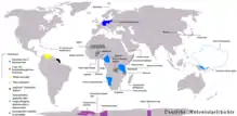 ![]() گستره امپراتوری آلمان در ۱۹۱۴، پیش از جنگ جهانی اول | |||||||||||||||||||||||||||||||||||||