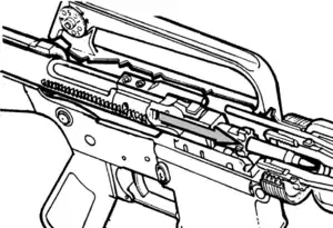 | گلنگدن | Gas-operated, rotating bolt (direct impingement) |