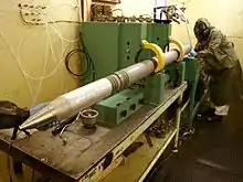 یک موشک ام۵۵ در حالی خنثی سازی و جداسازی کلاهک جنگی