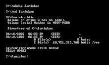 ![]() یک مثال از واسط خط فرمان ام-اس داس مایکروسافت، که نشان میدهد که پرونده فعلی، ریشه درایو C است. | |