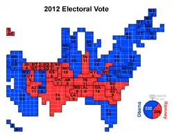 کارتوگرام از نتایج آرای الکترال، هر مربع نمایانگر یک رای است.