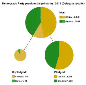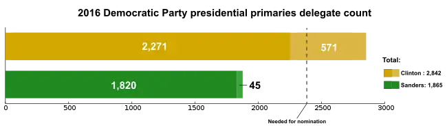 هیلاری کلینتون وزیر سابق امور خارجه نخستین دمکراتی بود که برای شرکت در انتخابات ریاست جمهوری اعلام نامزدی کرد. برنی سندرز سناتور ورمانت و مارتین اومالی فرماندار سابق مریلند او را برای کسب نامزدی به چالش کشیدند. نهایتاً برنی سندرز پس از نرسیدن به مقدار دلگیت مورد نیاز، به نفع کلینتون کنارهگیری کرد.