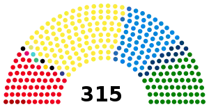 | مجموع کرسیها | ۱۵۱ | ۱۱۱ | ۳ | ۲۶۵ | − | |||||||||